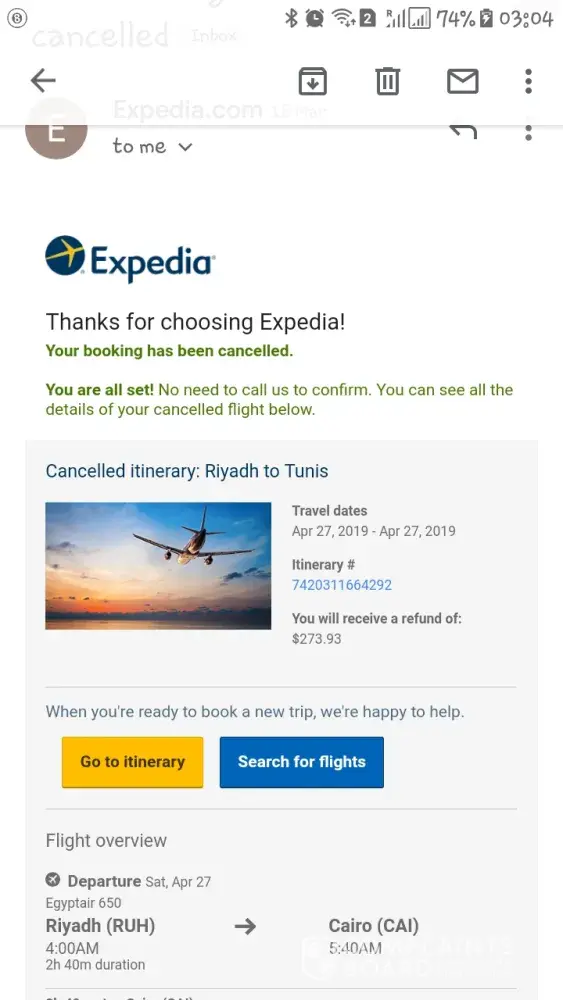 I 've booked a ticket with a lineary number [protected] from your website on March 2019 and I have cancelled it on the same day but till now I didn't receibe my money back.Note that I phoned you many times and your operators told me to call Egypt Air and I did so. Egypt Air said that they didn ' t receive the money because the ticket was cancelled. Please give a solution to receive my money back and thanks by advance.