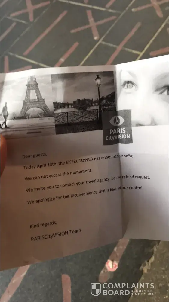 A itinerary I was suppose to do in Paris, in which cost a large sums of €500 for 2 people, unfortunately a section of this itinerary was cancelled. I wanted some compensation as this was not a cheap activity.