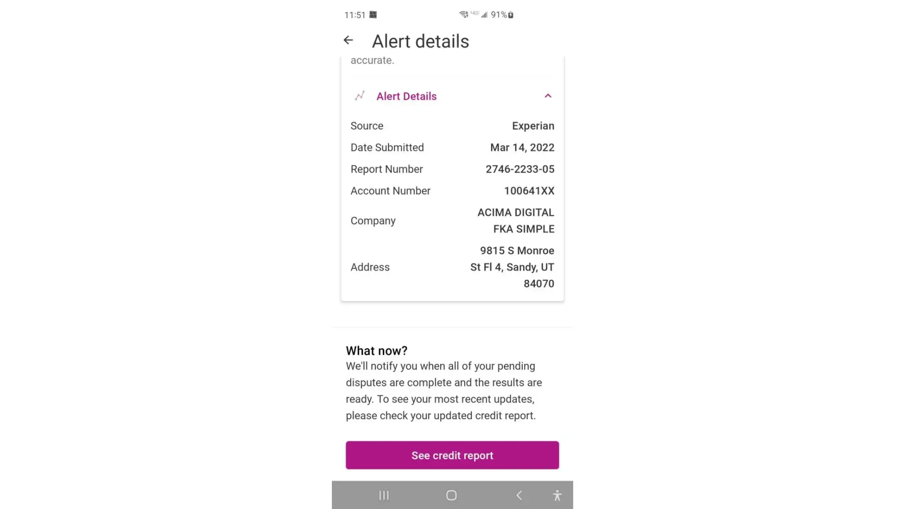 Acima credit fka simpl / credit reporting account