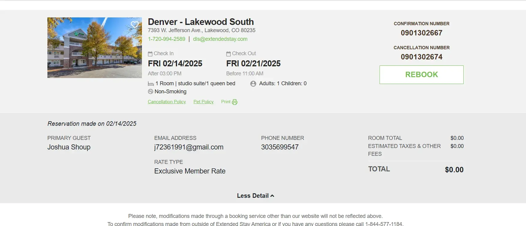 Husband and I were staying at tech center ESA for four months and the Manager took it upon herself to begin eviction process in June for alleged nonpayment never have I heard of this for a hotel, Manager claimed we owed over $900 we knew it was false. Everything was paid according to our records then Aug we received Eviction Summons now claiming we owed over $1400 again false. Thanks to our credit card statements it proved we had paid everything, here is the contradictory information... according to the court paperwork the Manager filed our supposedly rate was $98.98 then it said daily how can we be daily when we informed them we wanted the weekly rate. Now we never we informed of what the rate was and ever time we asked for a receipt they never gave one, well a new employee did not know of the situation and actually gave us a receipt but it was not one of payments made it was a price report and what it showed was astounding the rate listed was not what the Manager stated for the court now to let you know in Colorado if an eviction is beginning the tenant is given a demand of compliance saying to pay or leave once the Demand is satisfied the process stops well we satisfied it and guess what the Manager did not stop it. Back to the receipt it showed a rate of $84.56 a $14.49 difference then it showed discounts and these were outrageous there were some as low as $0.30 to $104.99 but these did not reflect in the price the last section was the total and that was identical to the room rate also rate was listed as nightly for our whole stay being in this industry I was shocked to see this. There were no indications of payments made all the discounts amounted to over $1100 where was all that applied to. We headed to court and luckily received a stay till next court but this Manager does not abide by orders and illegal evicted us before the next meeting thankfully all evidence was already submitted. We left and have been without a place trying to make sure things are resolved though this Manager continues to make fraudulent claims against us after all calculations have been made we overpaid by over $2500. Do not ever stay at the Inverness location you will be severely overcharged, have basic necessities denied, no one is ever at the front desk if you lock yourself out after 11 pm you are out of luck they lock the door and leave a sign saying come back when we open at 8 am, if you receive mail you never get it until days later, the front desk staff and Manager are disrespectful, rude and have really no business being in hospitality. Do not stay here at all. Also we are not the only ones who are being overcharged and handed with eviction paperwork there is a possibility of six to ten more guest who are going through this but are not fighting like we are the Manager and one front desk employee intimate and make threats to them also they have disconnected the electric in the rooms of these guest. We are not longer staying there but we are still fighting this we won received a judgment but now heading back cause the Manager is fighting to reverse it claiming no knowledge of last meeting. Also we have been residences of this place and stayed well over 30 days and guess what we never received our tax refund be sure to always get you taxes back on the 31st day. Wish us luck