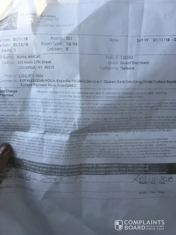 I stayed at the burr ridge ill location. I reserved a smoking room. The room's door was broken because it wouldn't catch on to the latch. It took two hours for the manager to switch my room which delayed me for my meeting as I couldn't leave my valuables in a unlocked room. After my room was switched, the lamps on the wall didn't work but I was already late and decided to not complain about it. Two days later, I received a loud knock on the door with a girl telling me rudely that I should have been gone and check-out was at twelve. I asked why didn't she ring the phone she said because she didn't have to and I needed to leave. I was dead asleep because I had a long birthday gathering the night before. I asked her to not speak with me in that tone and not to point her finger in my face. Ten minutes later she came back with the police while I was gathering my belongings. Not sure why that was necessary but it only added fuel to the fire. On the day of check in, another girl introduced herself as manager but the rude girl on the day of check-out screamed that she was the manager. She charged me a $275 smoking fee after I left the hotel when I clearly bought a smoking room! I went back and asked her to fix it and explained that she'd over drafted my account and I couldn't get back on the road because I needed that money for gas. She made me leave the establishment and I was so angry about being stuck in illinois that I threw the bell at her. She was behind the counter and I am glad. But I should not have been charged a smoking fee