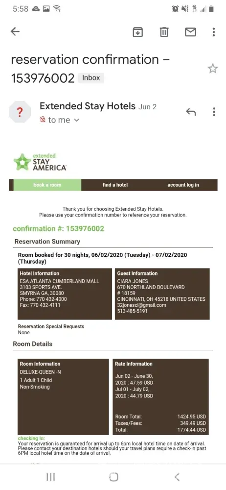 DEAR EXTENDED STAY AMERICA: I arrived in Atlanta, Georgia on June 2, 2020, and attempted to book a reservation through Extended Stay America. I was instructed to contact the reservation line to book my stay by the general manager April Grier located at 3103 Sports Avenue Smyrna, Georgia 30038. I contacted the reservation line to set up the reservation and...