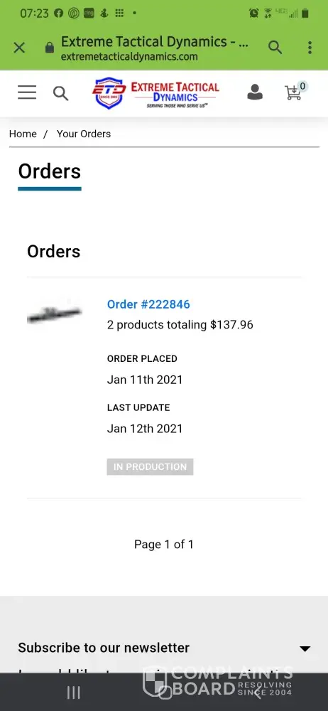 Extreme Tactical Dynamics said: Shipment #27939 1 items @ Apr 11th 2022 Tracking #: 9405511202509481799577 .