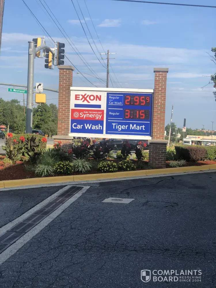 Complaint about Exxon gas station in Baltimore. They are falsely advertising.