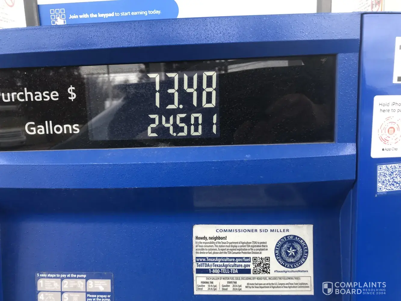 When I filled it up, I found out that I paid $3.259 and not $3.19. I approached the cashier to ask him why the sign showed $3.199 and I paid $3.259. He told me $3.199 per gallon was the cash price, even though the sign did not say "cash" anywhere to indicate that it is only the cash price.