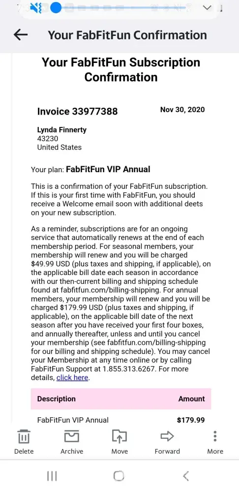 I have read that it was very sneaky of fab fit fun to write these emails that we're going into my spam that occasionally one popped up and putting hearts on a picture of maybe something interesting with no card no cash out nothing not even asking for a credit card number they had no permission and charged me $1500 US buyer beware this matter has not been resolved it is still in dispute 500 other complaints buyer beware do not buy from this company it is a scam it's misleading and they're liars