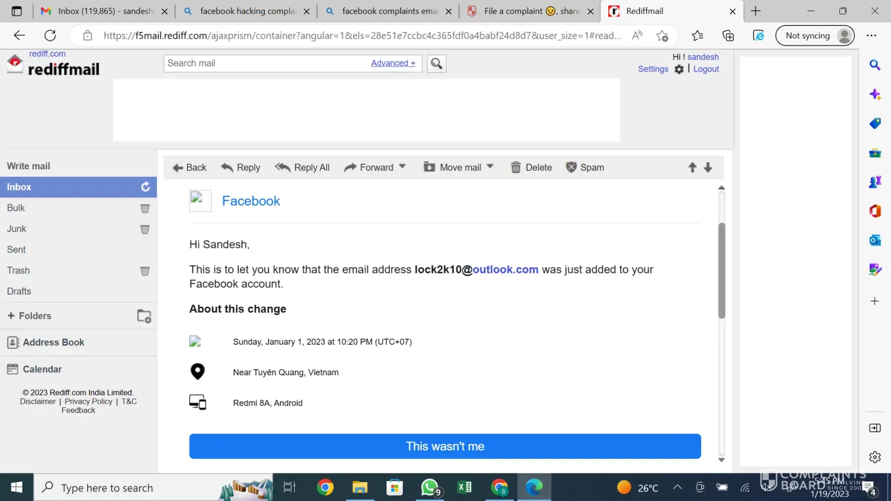My name is Sandesh Joshi and my email id is [protected]@rediffmail.com, my facebook account is hacked on 1st january 2023. Suddenly email was changed and mobile number also changed. Now neither i can access my account nor able to recover it. I have tried many ways to recover it but still unable to. It was clearly stated on my hacked account as your account is hacked from Vietnam. I am from India. I dont know what to do and how to recover my account. Kindly help.