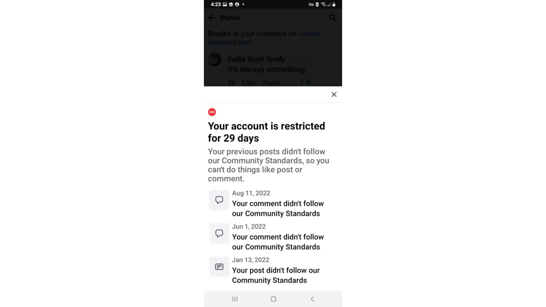 I commented on a community post about dog owners not pickup up after their pets on public property. I basically said I agree and that these dog owners are “lazy jerks.†I got 24 ban for calling irresponsible dog owners “lazy jerks!†BUT Facebook continues to allow all the fake profiles I report to make posts about all these scam/fake job offers around my community pages. I don’t understand what the heck is going on! I didn’t threaten anyone or curse. I said “lazy jerks†and I get banned. But others will post scam after scam claiming innocent victims and Facebook will do nothing about it.