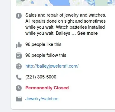 This Facebook page needs to be deleted ASAP for FRAUD, Bailey Jewelers is open and fully operating by the owner / shareholder. This Facebook page is being done by ex-partners that are NO LONGER involved in any day-to-day operations. Please remove this account or the "Permanently Closed".