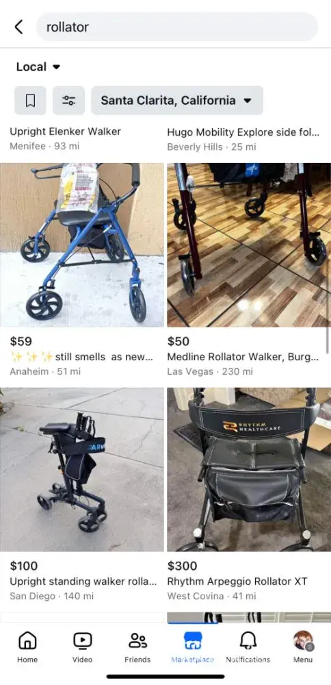 I tried to list a Rollator on Facebook Marketplace (walker with wheels), but the system keeps erroneously flagging it and saying it cannot be sold on Facebook Marketplace and that my account is in jeopardy of suspension.