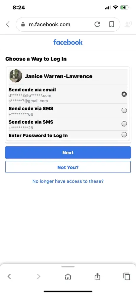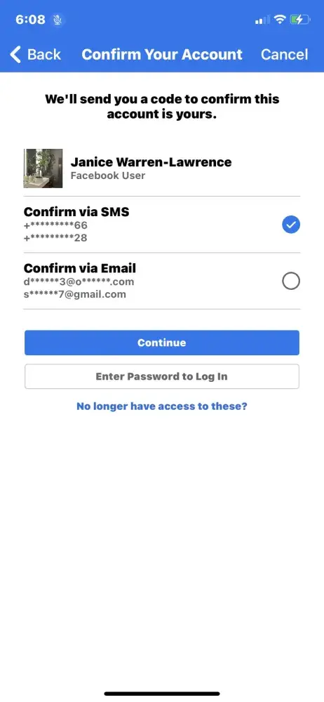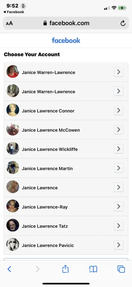 Both accounts have my name EXACTLY - Janice Y Warren- Lawrence - like my drivers license and yet Facebook will not acknowledge me. Even though both names are identical to my drivers license and the pictures on my phone. I am including screenshots and pictures.