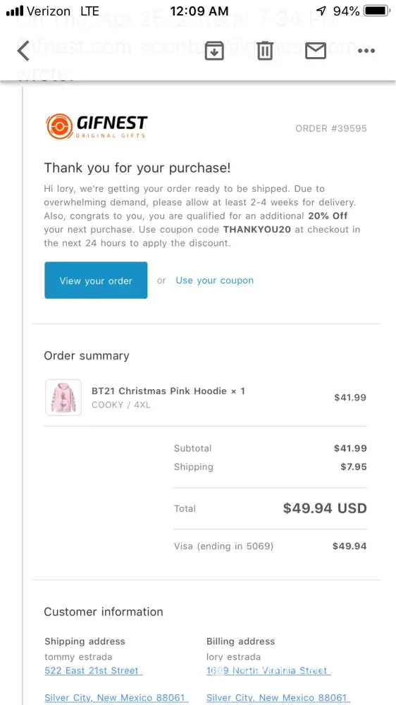 I had a terrible experience with this company as well. I paid for expedited shipping which they advertise as 5-7 days and it took 3 weeks to receive. The product was terrible. The color was wrong and the quality was awful. Nothing like the video on FB. Now they only want to refund me 20%, $9.39 instead of the full amount and allowing me to return it, stating that it would cost me more to return it. The label says it shipped from CA. but the product originated from China. There’s no way it would cost more than the purchase price to ship it back. They’ve even admitted in an email that their warehouse made a mistake. Don’t buy from the site unless you’re willing to keep the product. As you can see from the photo, it’s a light red but I ordered a brown wig.