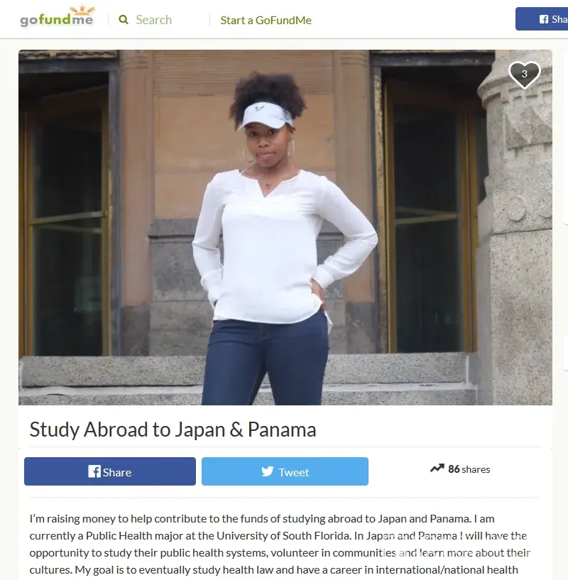 This is Naomi Alyce Williams who lives in Tampa, Florida and is from Buffalo, New York. She is on GoFundMe begging for money to study in Japan and Panama. Apparently she wants to also spread her hatred of anyone who isn't black to those countries as well.