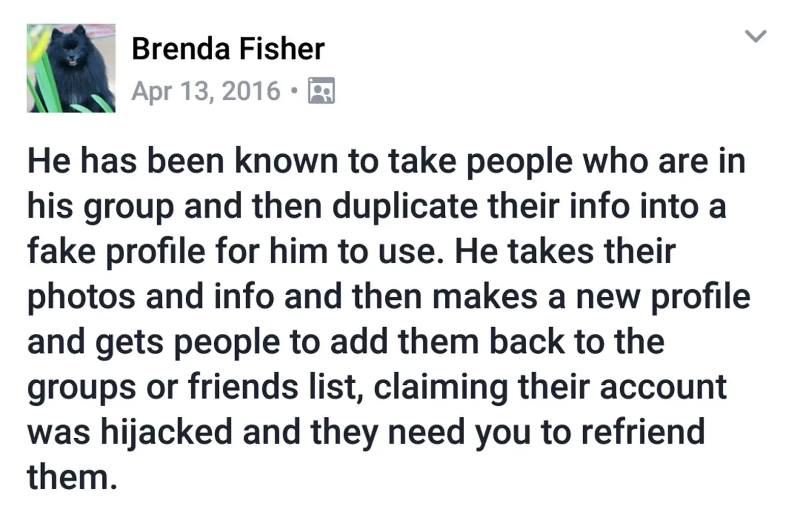 This is a video I posted on a facebook group a year or so ago. He hacked into the group using one of his cloaned accts., and made a copy. Since that time, he has PM'd all my neighbors, family and friends, and posted on the world wide web that: