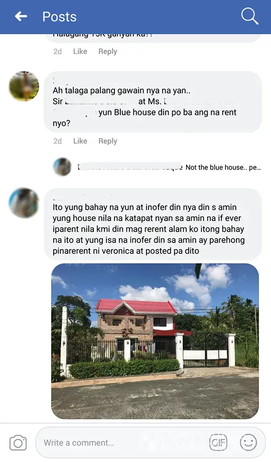 We were looking for a place to stay in Tagaytay where we can celebrate Christmas day with the family. More than 20 pax kami so we needed a bigger place. Then, we saw this post dito sa group. Very attractive yung blue house sa photos so minessage namin yung nagpost namely "Veronica". She's an agent, not the owner of the house. We asked how much was the rate/night, she said it's 12k. Kahit medyo pricey yung rate, nagpa-book na kami for Dec. 24-25. May 6k na downpayment and the remaining balance can be settled upon check-in. We sent Veronica the downpayment through the bank. So, eto na nga, December 24, yung ibang family members namin nauna na dun sa place. And guess what, only the garage gate was opened, all the other doors are locked! They had to stay at the garage!
