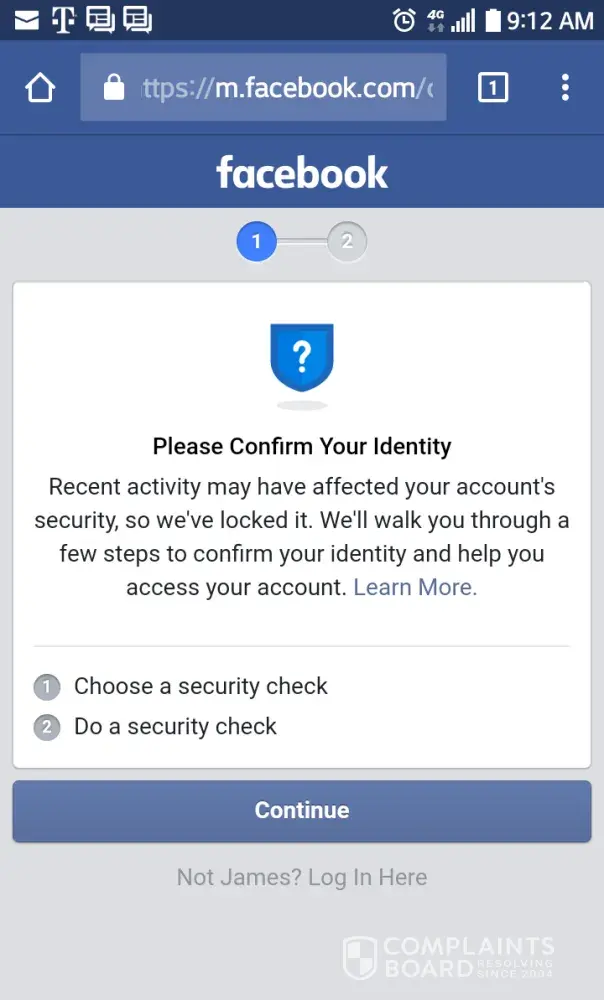 On August 26th 2017 I tried to access my Facebook account it was down. When Facebook returned to being accessible it would not let me in said that my account was locked due to unusual activity the only unusual activity I had was a new phone I have had the same email address for at least the last 7 years yet it still wants to validate me and when it tries to validate me runs into a continuous loop I've not been able to get in my Facebook for the last 2 days.