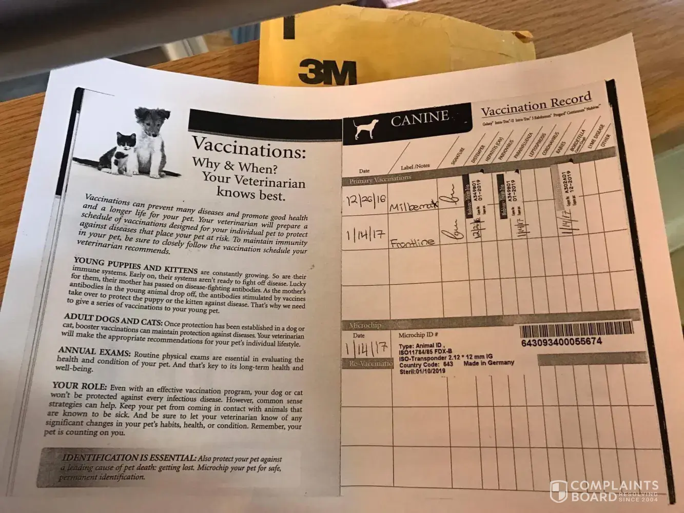 •told me that the cat was fully vaccinated but sent me fake paperwork (On a canine form) *picture attached*