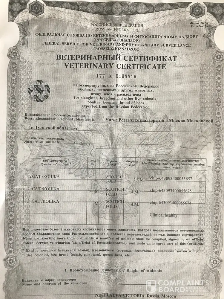 • used fake documentation from russia to fool the airlines into thinking the cat was 4 months old and full vaccinated *documents attached*
