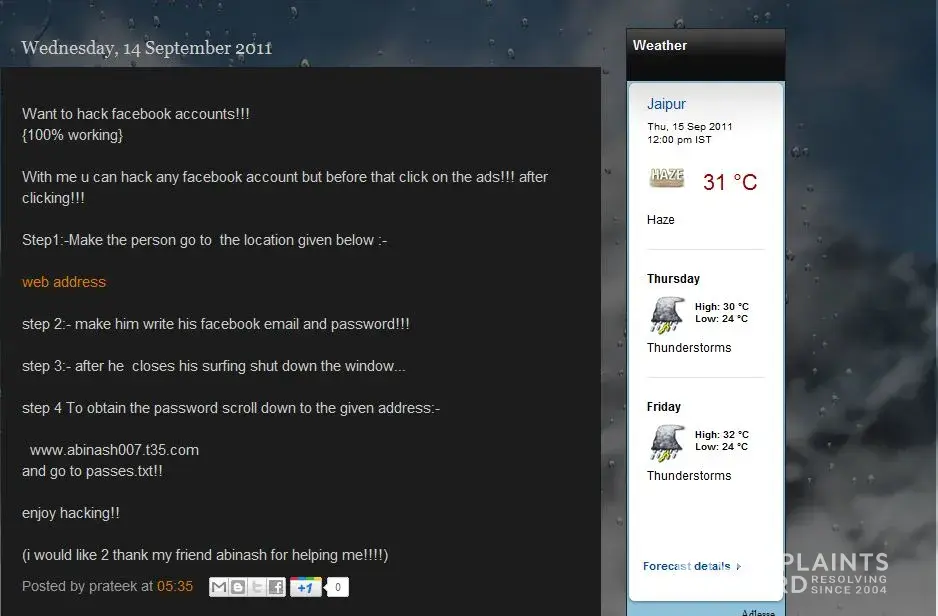 This site is being used for phishing, & there is also one blog of his friend who is attracting people towards it, helping him