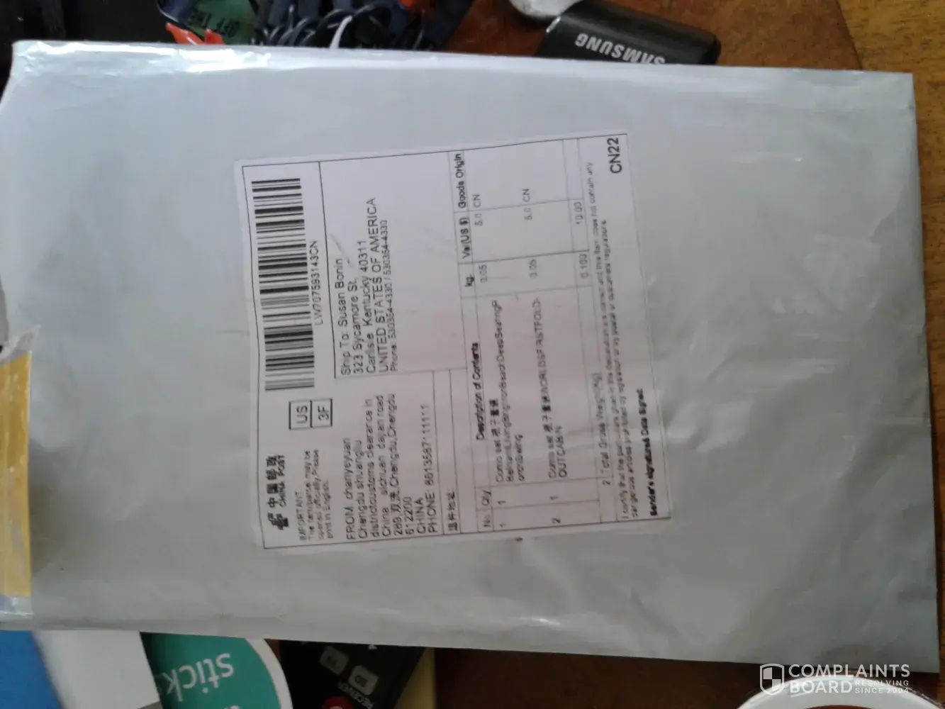 I received a small package today from China. I normally order items online but more recently just home goods due to the covid-19. It had a bracelet in package. Plastic. I didn’t order this. The only unusual item that I have purchased was a piece of furniture that I saw through an ad on Facebook. $199. I paid for and have not received it. Months ago. It’s late and I’m tired but tomorrow I will check on this and my credit card. If I’m fact it was the furniture ordered, I am appalled and furious that Facebook allows these companies to advertise. I sprayed it with Lysol before thinking it was a scam. That’s why it looks so bad.
