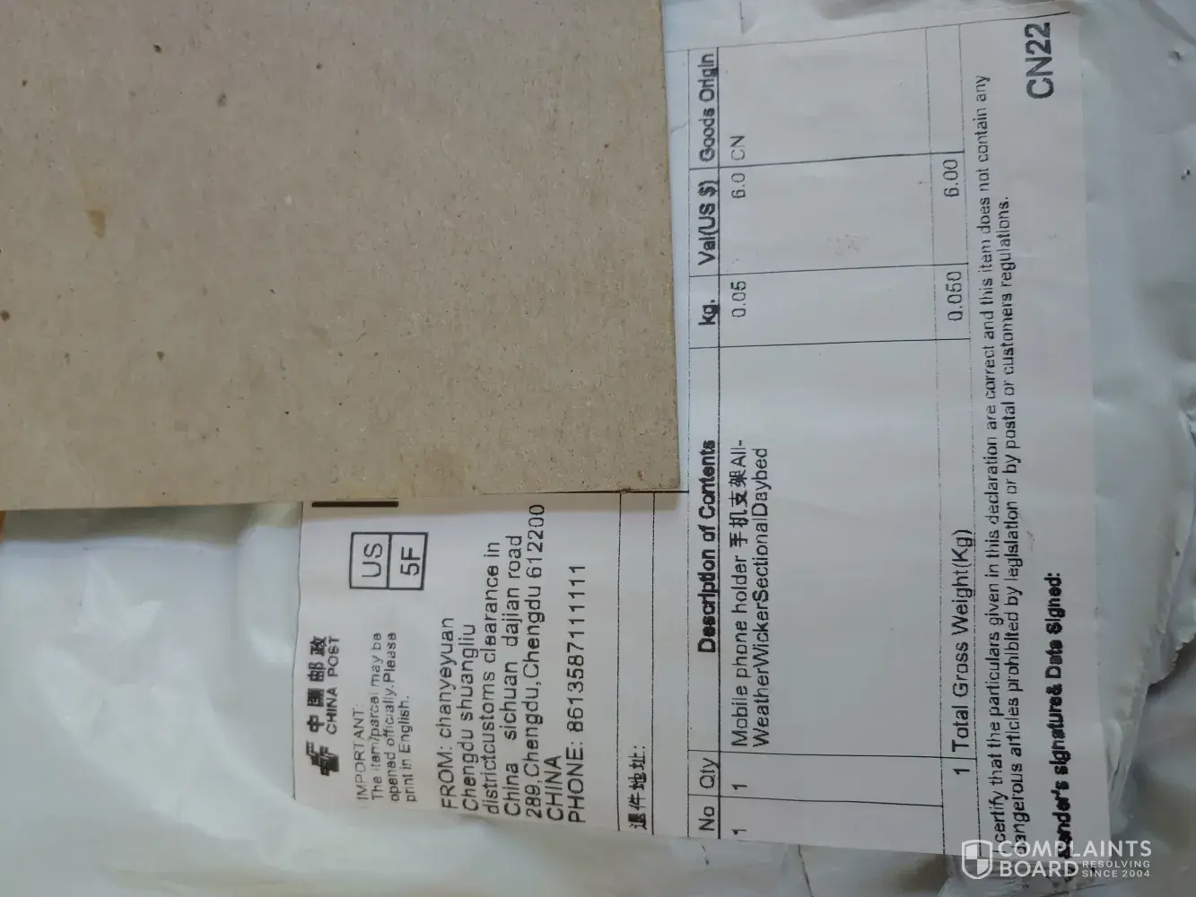 Received cheap, plastic, pink mobile phone holder, in lieu of Weather Wicker Sectional Daybed. Even had this item printed on front of mailer pak. Their phone number 86 [protected]