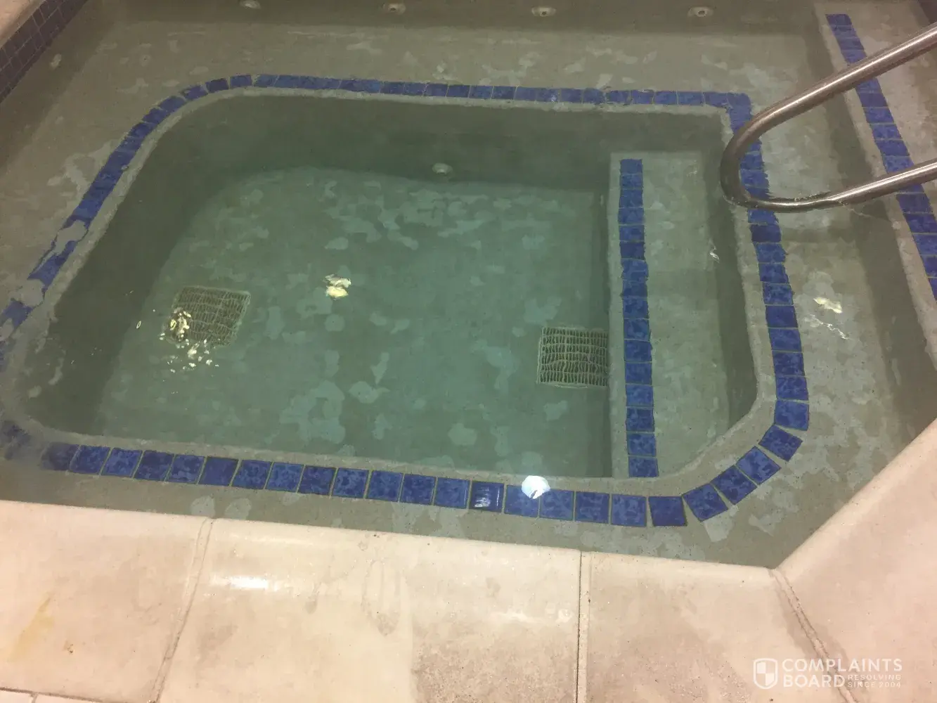We have always stayed at the above location with no major problems until a Friday, January 10th. The hot tub was completely disgusting...filthy the tiles around the window in that area were missing. The pool water was was cloudy and the microwave in the breakfast area had about a month of splattered food all over the inside and door. This is completely unacceptable! I would like some kind of compensation for a ruined stay.
