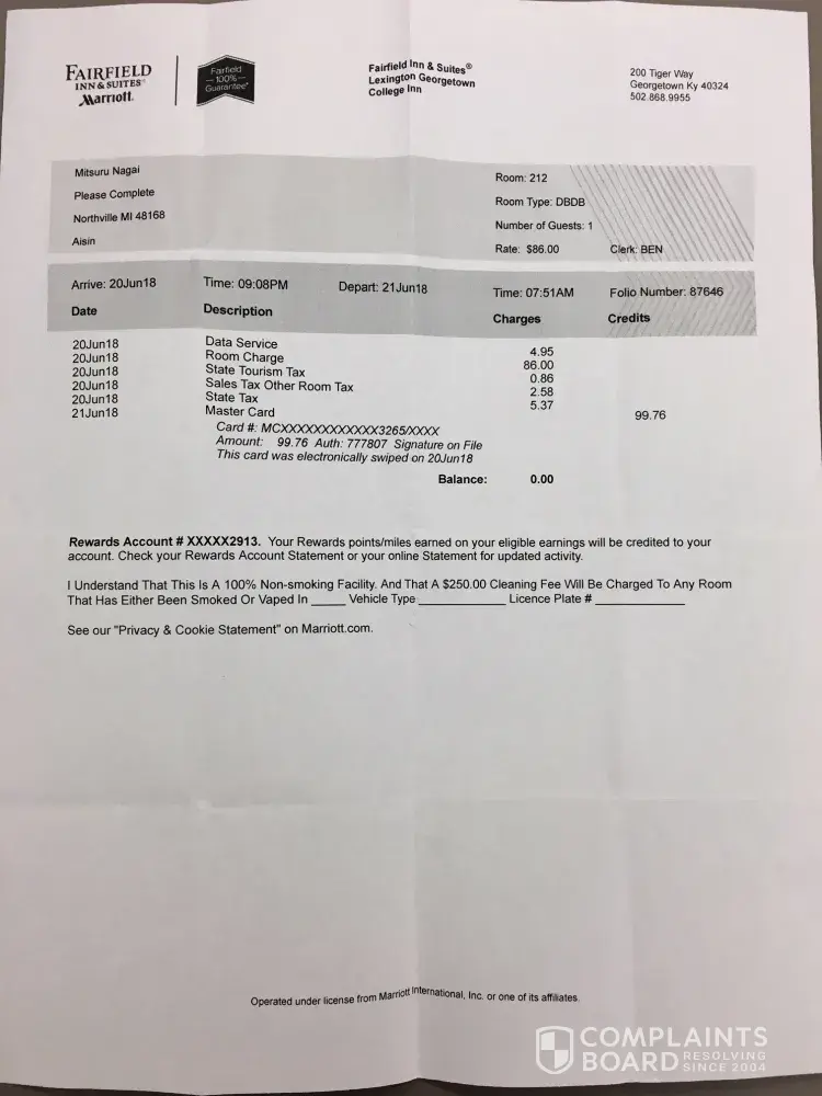 Card# are ****6814 PNC Credit Card for the reservation and ****3265 5th3rd Debit Card for the check-in.