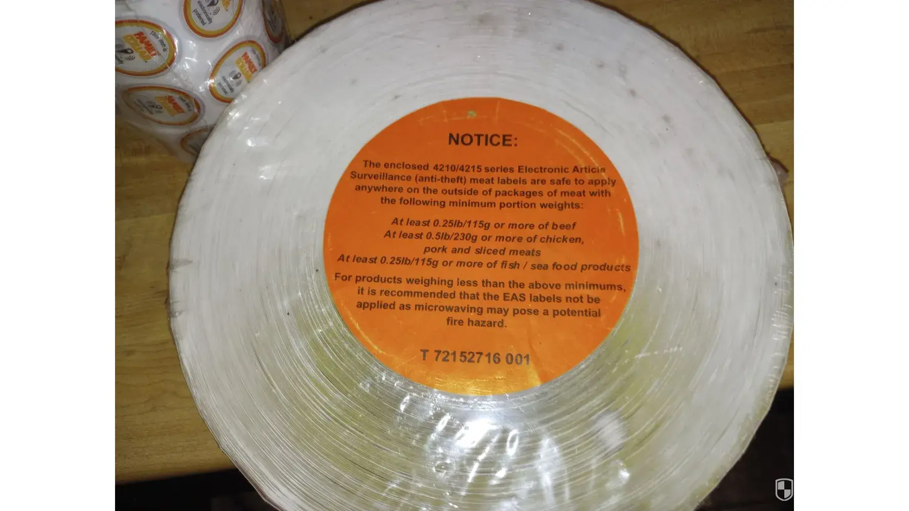 Also theft tape it says FD on it trashed unopened X2 times 1 wheel of theft tape for meats trashed still in plastic .