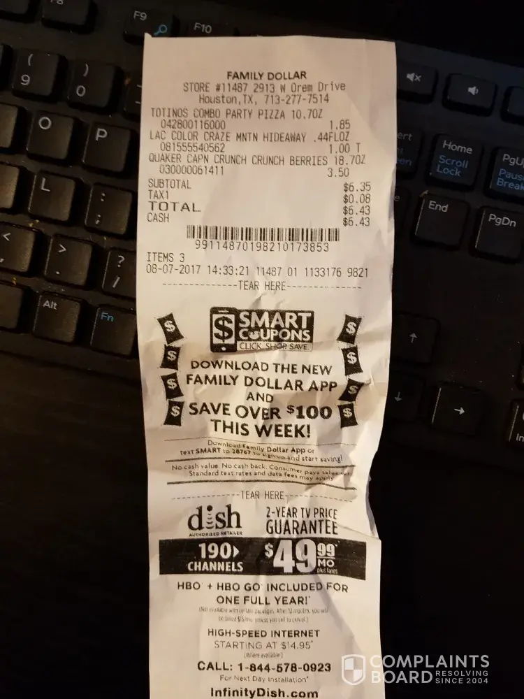 I purchased a universal remote granted it was only $10 but it didn't work the girl said if it doesn't work I can bring it back with the receipt. Then I question the cashier because half of my receipt printed and half of mine did not the was that going to be a problem just in case she said no it will be fine.