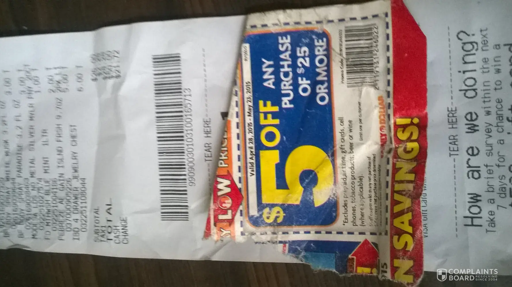 I went shopping at my local family dollar store #09003. I spent 26.00$ before tax after tax it was 28.28$.i proceeded to give cashier my coupon for 5$ off any purchase of 25$ or more, cashier would not let me use it saying that after coupon my total would be less than 25$, so I left paying 28.28$ VERY UNHAPPILY. I TOLD HIM I WAS GONNA COMPLAIN . AS I...