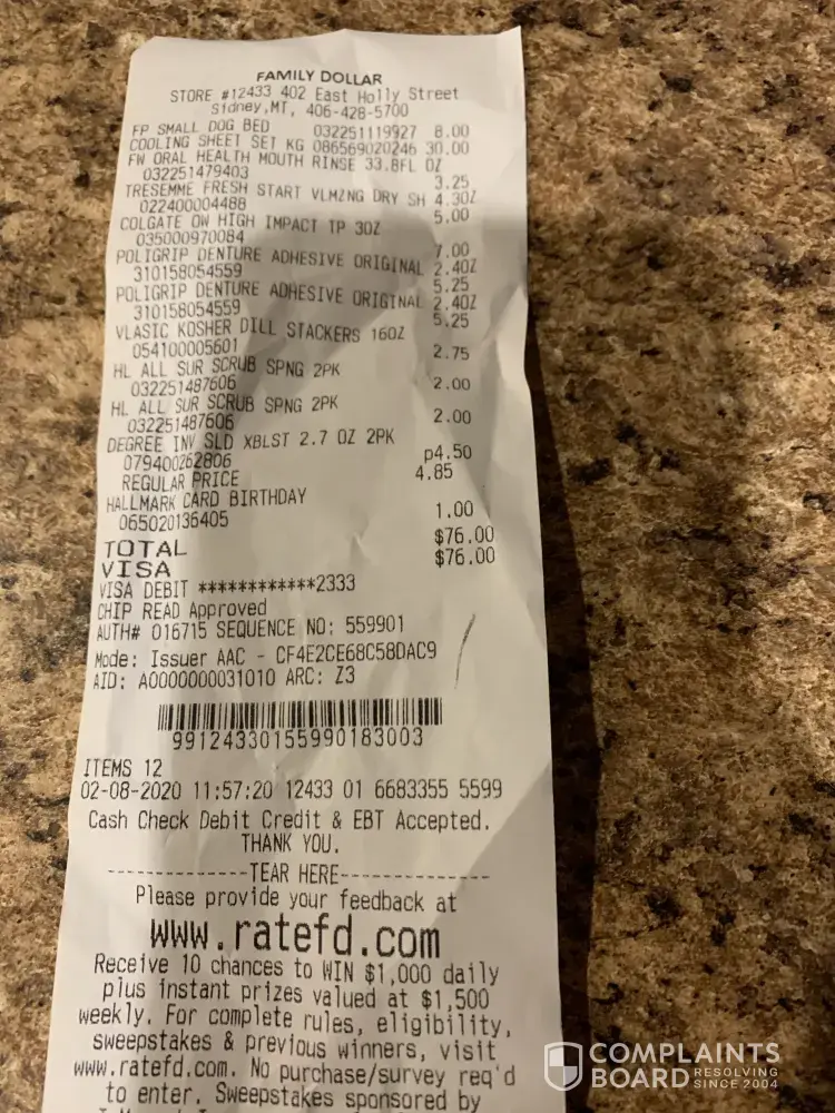 Family Dollar earns a 1.2-star rating from 12 reviews and 2310 complaints, showing that the majority of bargain shoppers are dissatisfied with their purchases.