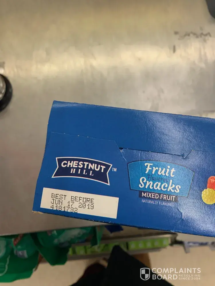I went to get fruit snacks for my daughter school and I took some to work as well and as I started eating them and they were extremely hard after the second one I knew something was wrong because the taste was not normal which caused me to be sick on my stomach so I proceed to look on the bag and realized the box stated BEST BUY JUN 17 19 almost a whole 8...