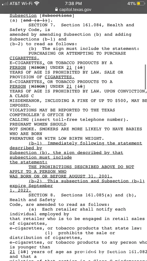 I came in this evening to have my daughter by me cigarettes and she is 18 was born before August 31, 2001. They refused to sell them to here because they said she had to be 21. She even pointed out the sign that they have and it states she can buy them as long as she was born before then. I have a very big problem with this as I spend a lot of money with y'all.
