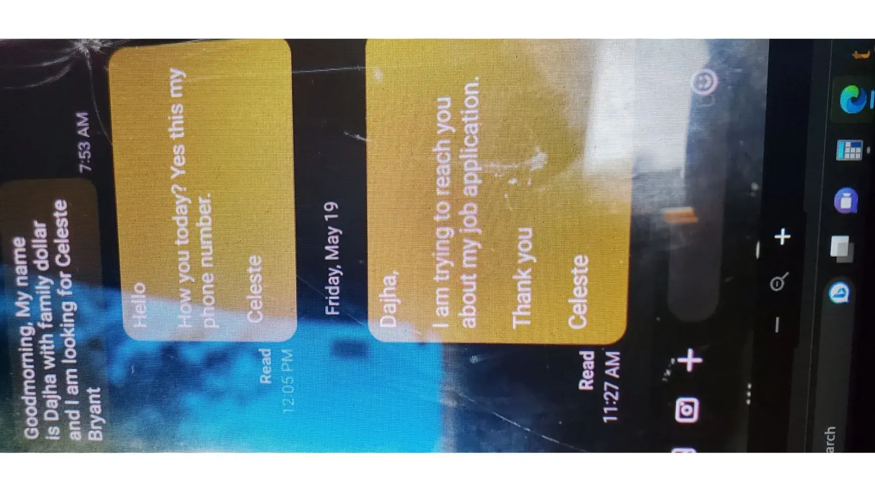 I requesting an investigation into the hiring process. I submitted my application around May 10th or May 11th. I was in the store and I was talking to Dajha Turner I was in the store and to let her know that I submitted an application for merchandising. I told her my first name, Celeste. She said she received an application with a first name that started with a "C". Then she texted me from the number [protected] on May 12th.I have been the Family Dollar many times and she has never mentioned to be about an interview. I have noticed the store has signs up needing help. It seems there is a big turnoverat this store because of her. I also see other employees from other storest putting her stock on the shelf. If you need help so much why aren't you hiring. My last time I was in the store she was on the phone talking with someone that she had to work a double shift. You need t o investigate this store I feel she is steeling time and not working.