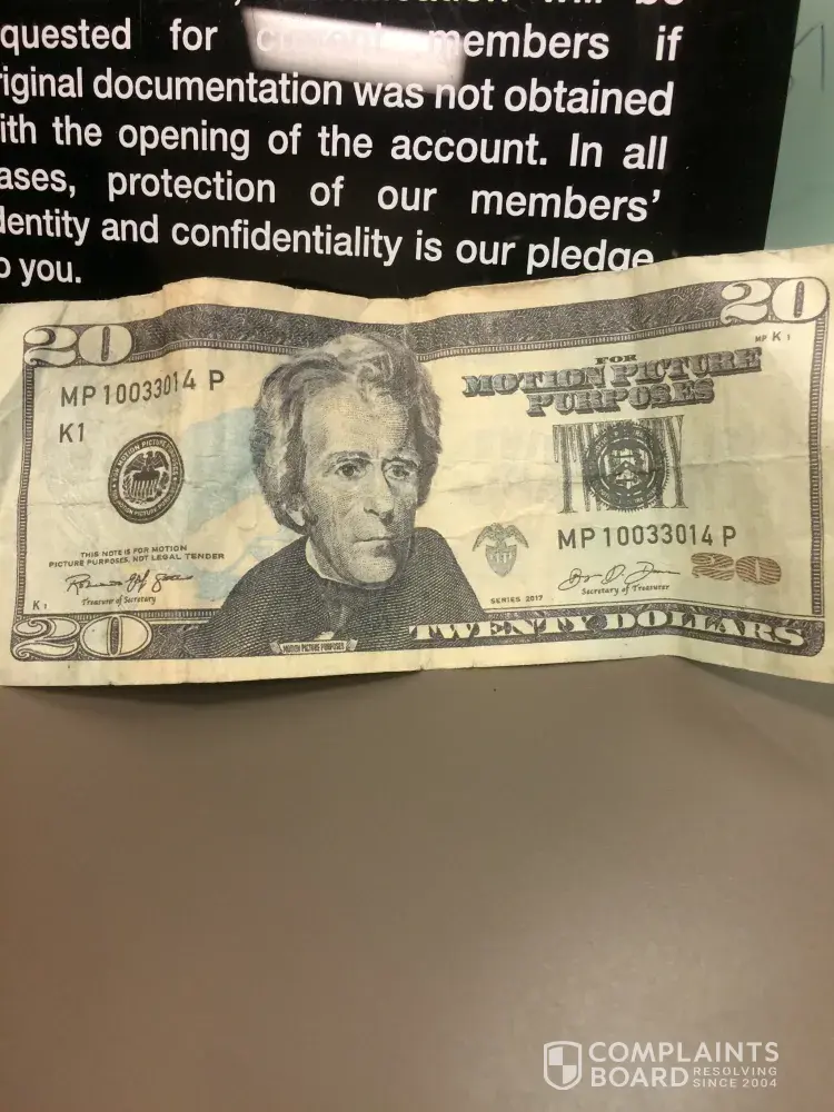 Yesterday the cashier gave me a fake $20 bill. My receipt shows $50 bill for the items purchased and one of the bills was fake. These two bills went right to my deposit at Hope Federal Savings in New Orleans, La. where the representative brought to my attention. He kept the $20 bill but allowed me to take picture. Please refund my $20. My savings deposit is short because of this serious error. Receipt and picture of the fake $20 bill is available for your records. This serious incident has occurred with other neighbors but Never with me.