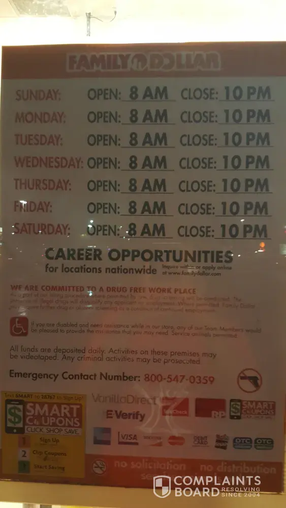 When you hear a manager talk bad about their costumer and employee very unprofessional. Love family dollar but will not shop at this one because of the unprofessional conduct of the employee and costumer.