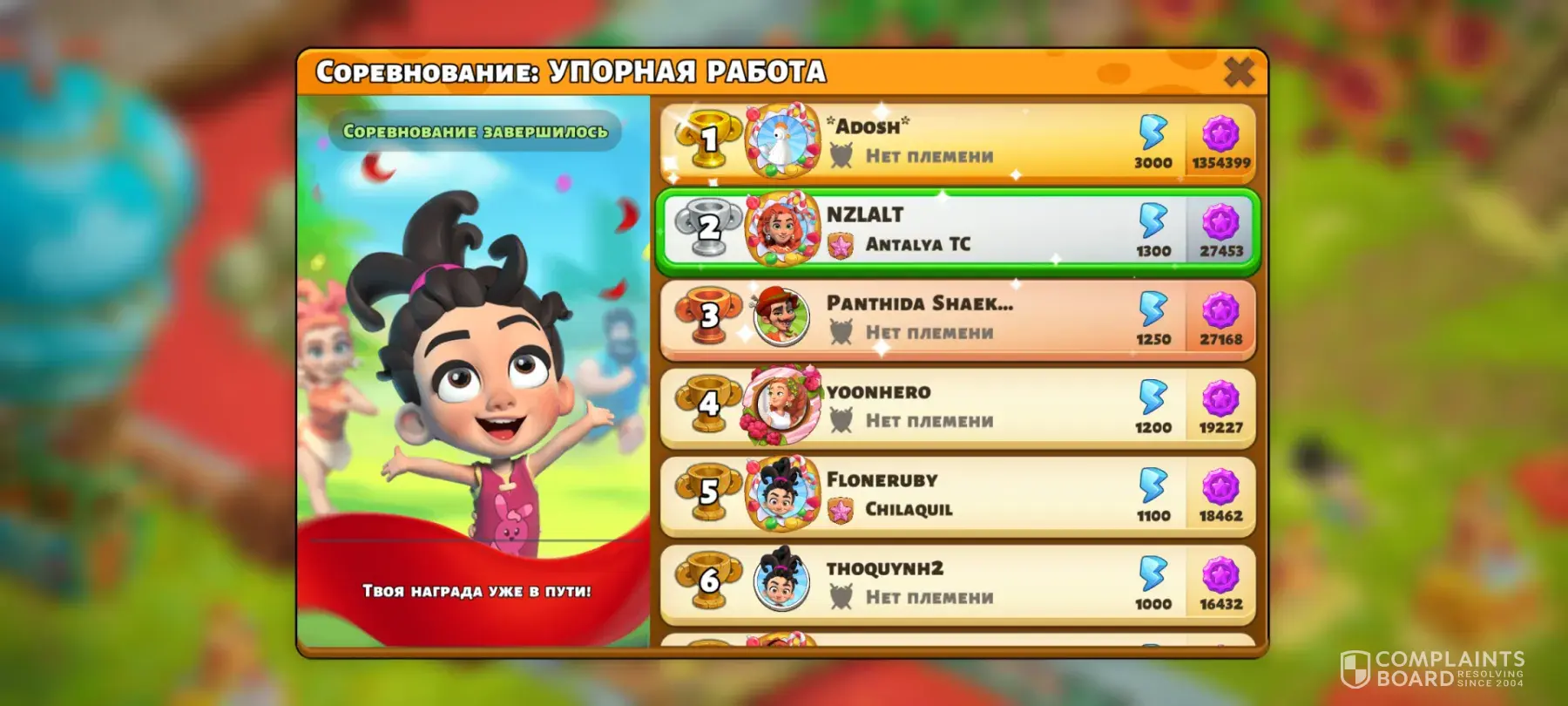 Мой ID: FDYLCB Я уже вам пиÑала по поводу накрутки очков игроком "Adosh"(Ñкрин прилагаю),но вами не были принÑты никакие меры...в итоге Ñоревнование закончилоÑÑŒ Ñ Ð·Ð°Ð½Ñла второе меÑто, так как ÑоревноватьÑÑ Ñ Ð¸Ð³Ñ€Ð¾ÐºÐ¾Ð¼ у которого накручено почти полтора миллиона очков чеÑтному игроку не реально... Почему вы не принÑли меры к не чеÑтному игроку? Почему Ñ Ð´Ð¾Ð»Ð¶Ð½Ð° неÑти убытки( в виде призов за первое меÑто,которое по праву должна была занÑть Ñ)?С вашей Ñтороны была только ÑˆÐ°Ð±Ð»Ð¾Ð½Ð½Ð°Ñ Ð¾Ñ‚Ð¿Ð¸Ñка,что типо будете проверÑть и Ñ‚.д...Я потерÑла очки из-за вашего бездейÑтвиÑ, первое меÑто было по праву моё! Прошу принÑть и раÑÑмотреть мою жалобу и в кротчайшие Ñроки возмеÑтить ущерб! С нетерпением жду вашего ответа( надеюÑÑŒ не Ñтандартную шаблонную отпиÑку) Заранее ÑпаÑибо за ответ