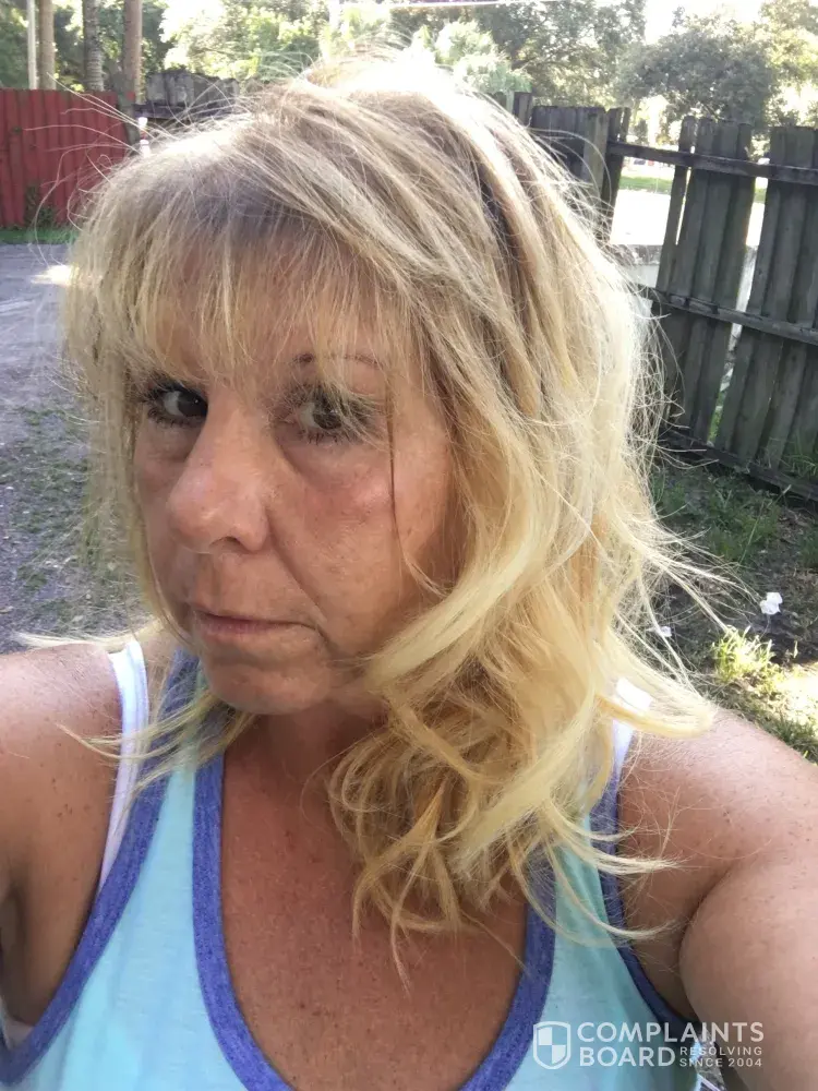 She adds color to the chunk of hair hair she forgot and then continues to add more Coloring which turns out to be bleach which I had expressed to her that I did not want to put more blonde highlights . My hair is completely fried it looks horrible . O returned to the store and spoke with a Nicole (manager) I'm crying and she's telling me it's not that bad She's asking if I want her to add more hair color? Im not sure how to resolve the problem. It will take at least 6-12 months for my hair to grow out, the damage is unacceptle and she gives a shampoo and some Keritan spray . I paid $121.00 for the coloring Completely devistated by this experience