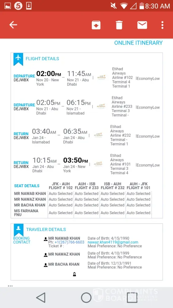 Whole of Nov 2014, I have been in discussion with their customer service to figure out a solution. Two instances worth mentioning here. At one point, I asked the customer care rep to escalate the call and place me in call with a customer service manager. He was reluctant. I told that I am not going to disconnect the call unless I get to speak with a higher official. They muted my line and I was on hold for 20 mins and finally they disconnected the call. Initially when I asked them if they could change just one person's departure date, they told that it is not possible. But after two weeks when I was getting frustrated (and by that time the ticket cost got higher) they told that they can do it and denied it completely that they told it the other way initially.