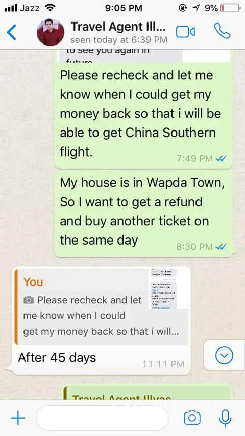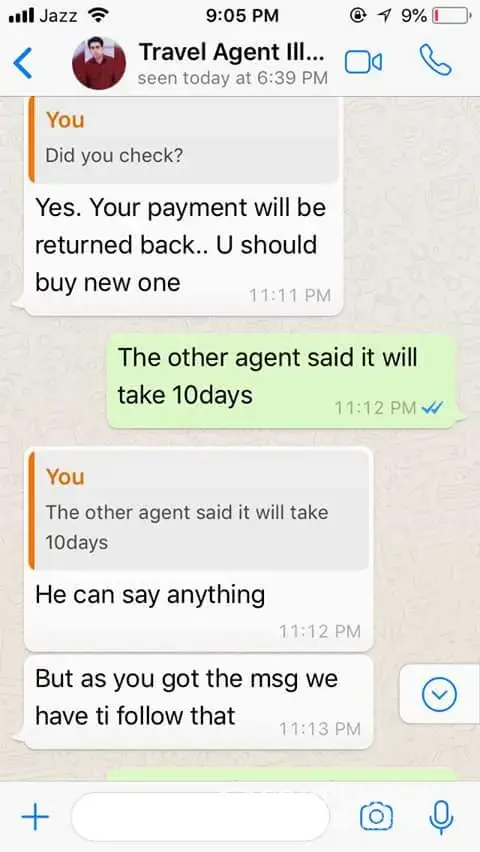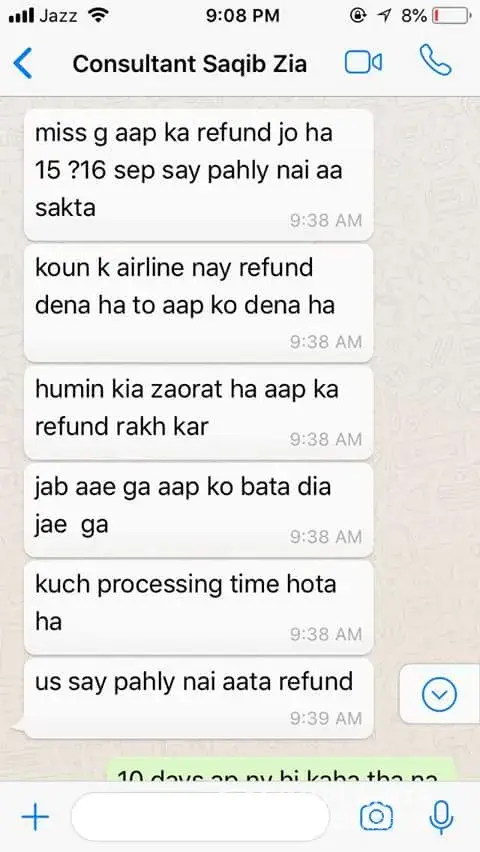 Today dated 12 Agust 2023 I again contact Mr Junaid and he said that I did not ask you like this. And I have no refund of your tiket.