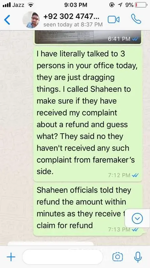 I felt cheated and humiliated by travel agency faremakers. My brother has also filed complaint at their customer service helpline and talked to Customer service manager Mr. Usman contact # [protected] but he was not even picking my calls.