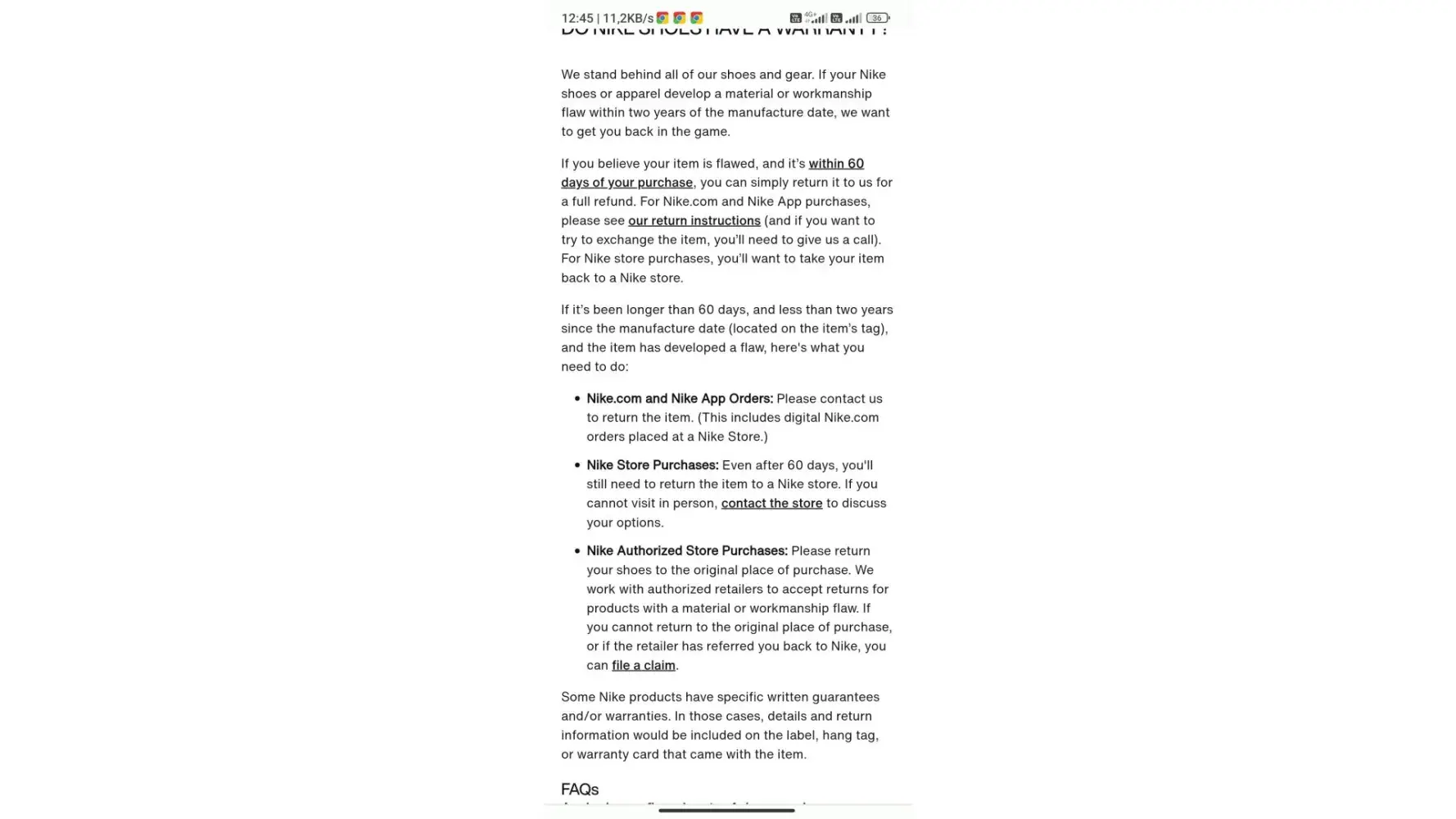 If your Nike shoes or apparel develop a material or workmanship flaw within two years of the manufacture date, we want to get you back in the game"