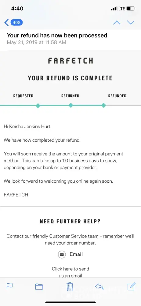 reverse refund - farfetch inquiry: 6e7jp3