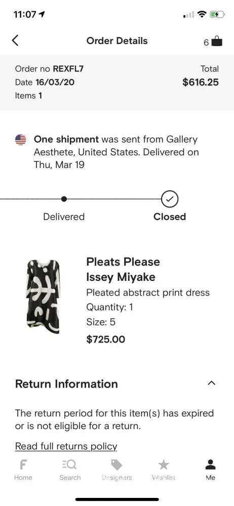 I purchased one US$616.25 Issey Miyaki dress on March 15th, 2020 and the package was shown delivered in UPS tracking status on March 19th while I sat home the entire time for COVID-19 Stay-in-Shelter order but I actually NEVER received the package. For such an amount, Farfetch shipped it via UPS without signature required. There is no choices because Farfetch has disconnected to work with this lost package incident, I can only work with my bank and just take the loss for US$616.25 if the bank cannot stand for the dispute in the end. I can provide all email chains and audio recording of my conversation with Farfetch as an evidence to prove I’m telling the frustration as a fact/truth. I have been shopping with Farfetch for almost 5 years. What a customer service I have received! If you plan to buy anything on Farfetch, good luck! Be ready for your loss and lose money for nothing, because they simply do not care their clients even if their client tries so hard to work with them. SAD. SAD. SAD.