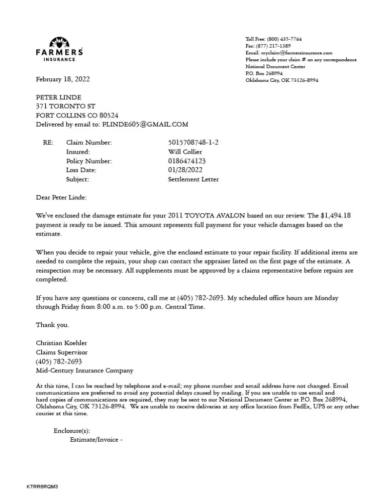 Farmers Insurance Group Car Insurance Claim