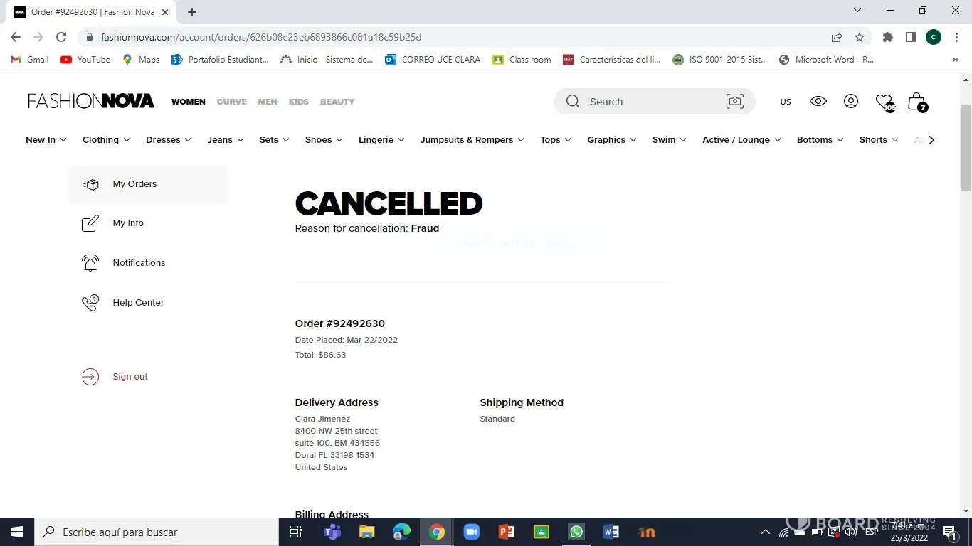 Fashion Nova My order was canceled, and I paid with my mastercard