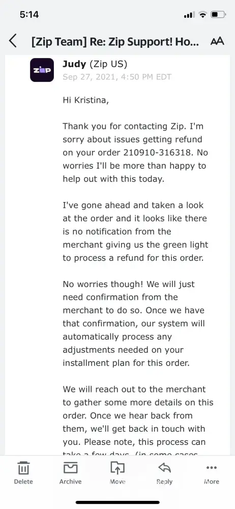 I got an email stating order was cancelled I need to know. I was using zip pay and the payment came out of my account. What was the problem? '
