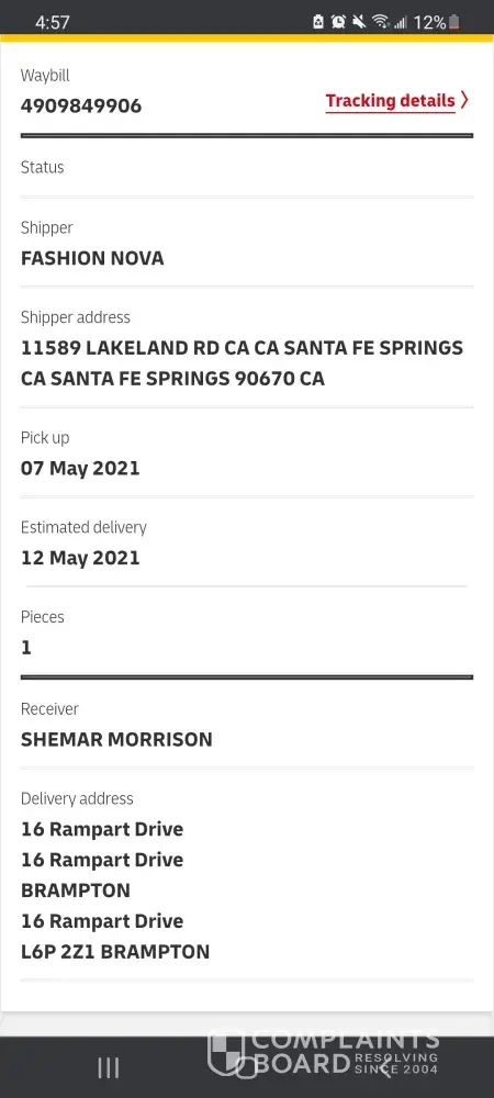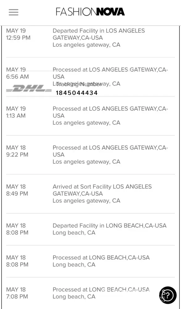 Received a text from DHL, stating my "shipment" was on the way...I got the address and name of the Receiver. Contacted Fashion Nova again, it's not their problem, they got their money and let's be honest, they don't care.