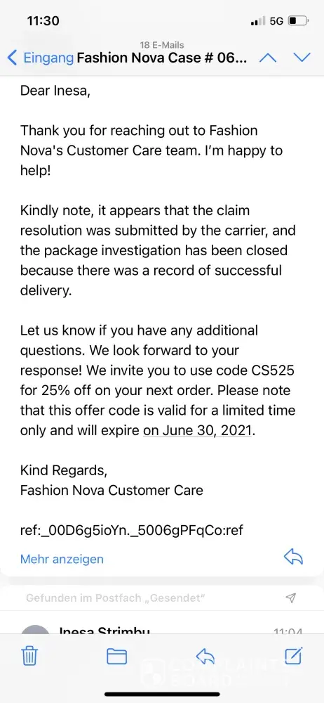 Fashionnova refuses to give me a refund, because they say it was delivered.