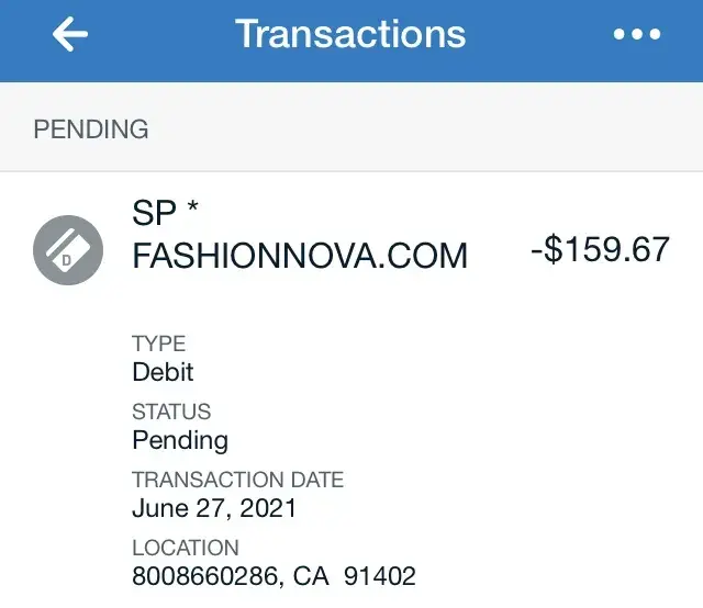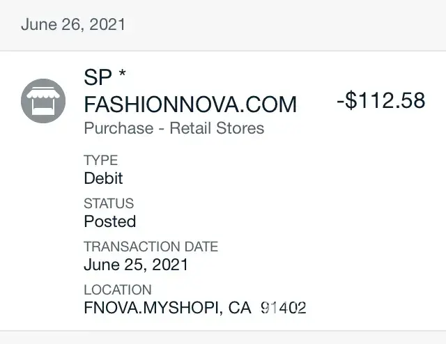 Thank you for reaching out to us! We wanted to follow up on the unauthorized transaction made with Fashion Nova that was reported. Regrettably, the order found associated with this transaction has already shipped from our facility and we were unable to cancel or process a refund at this time.